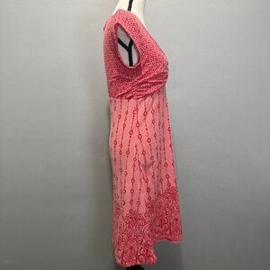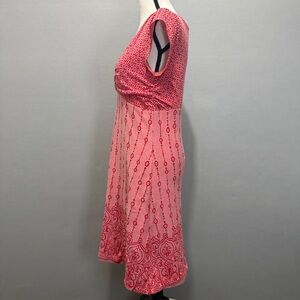Athleta Dhara Dress M Red Pink Paisley Layered Look V‑Neck Short Sleeve Ruched