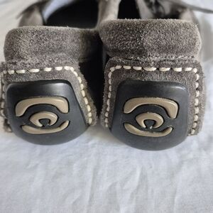 Manitobah Mukluks Suede Beaded Grey Moccasins Vibram Heel Ladies 5