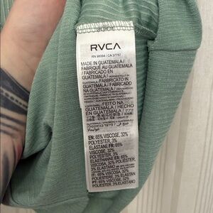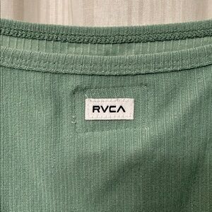 🌿Excellent condition! No major piling, stains or tears. RVCA Selects brand, pretty seafoam green, light mint green. Square neck. Crop top style with a raw bottom hem. Classic California skateboard style. Definitely a must have staple for any closet.
