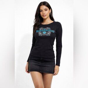 Vintage Y2K 2005 Harley Davidson Black Long Sleeve Graphic Tee Size S