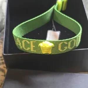 Bold green bracelet with iconic Medusa detail. Adjustable bracelet.