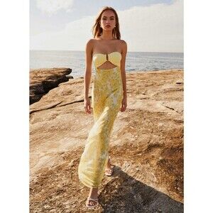 Peppermayo Exclusive Tropicana Maxi Dress Daffodil Yellow Size 8 NWOT