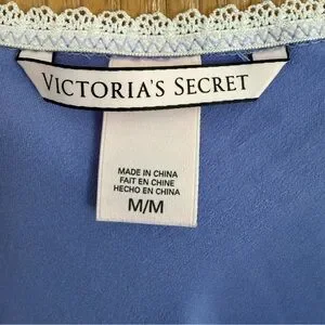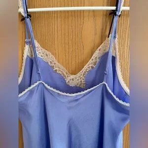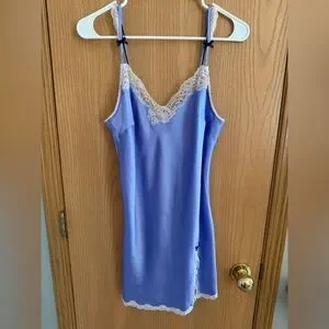 VICTORIA’S SECRET Periwinkle Y2K Lace Trim Slip Babydoll Side Slit Nightgown M