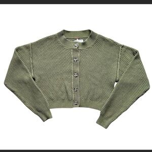 Free People Lila Cardigan Green Textured Knit Button Front (L)