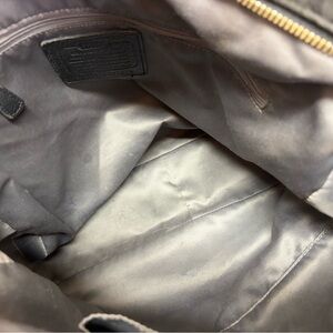 • Hardware: Polished silver-tone Coach logo plate and rings.