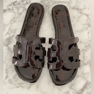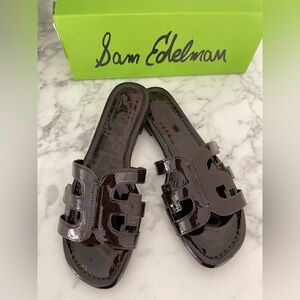 New Sam Edelman BAY Brown Patent Leather Slide Cut Out Sandals Size 7.5