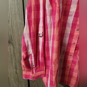 Catherines Coral and Pink Plaid Shirt Button Down 3x