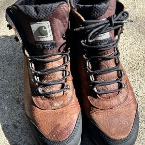 Durable and stylish, these Carhartt brown leather men's boots are perfect for outdoor adventures. Featuring a rugged design and comfortable fit, they are ideal for any terrain.
