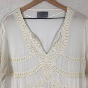 RUFF HEWN GREY Embroidered Beaded Boho Tunic Women's XL Ivory V-Neck Top India