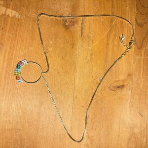 Colorful and contemporary, this lengthy, gold-plated necklace boasts a substantial hoop pendant crowning dual layers of lustrous, rainbow-hued crystals.