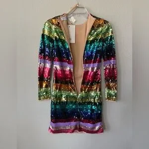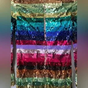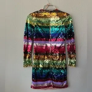 Mac Duggal 93724 Rainbow Sequin Multicolor Striped Long Sleeve Dress Size 2 NWT