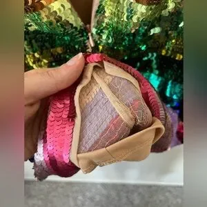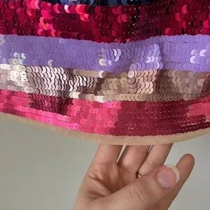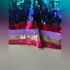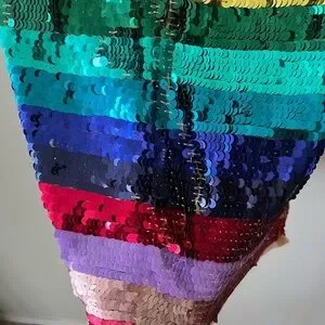 In excellent condition- BRAND NEW WITH TAGS- NEVER BEEN WORN. Comes with extra packet of sequins. No rips, stains or tears. Sequins can be “moved” to make sure they line up- there is some spacing between them which shows underlying fabric in some areas especially around back zipper. Some of the fabric is bent/wrinkled and needs to be spread out. Few loose strings that don’t affect quality of the dress. Still has a lot of life left!
