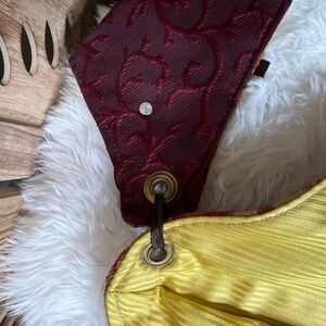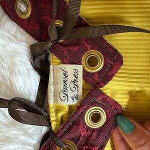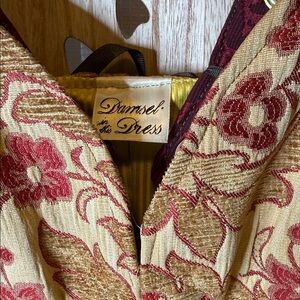 Discover elegance with this floral lace-up corset. The rich burgundy and gold hues create a one of a kind look.
