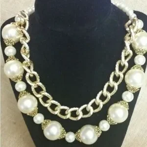 Hand made Pearl with gold chain necklace one of a kind unique design. Won't tarnish.