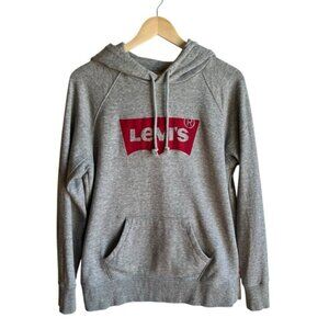 Levi’s Logo Hoodie Medium Gray Fleece Sweatshirt Relaxed Fit