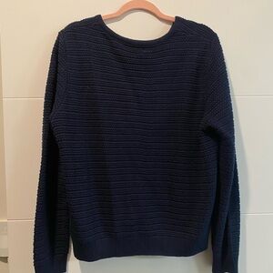 Cozy and stylish navy blue sweater with gold buttons. Size large