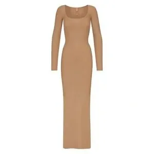 SKIMS Camel Long Sleeve Maxi Dress Shimmer