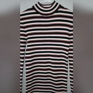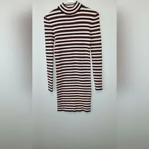 Forever 21 Y2K striped mock neck midi dress Women's size Small preppy ac…