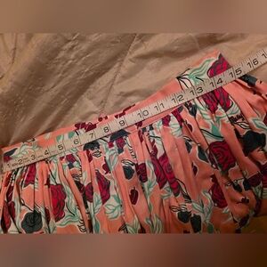 New without tags Punup Couture Mary Blair Floral print A-line skirt with pink base and red floral design size Large.