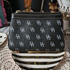 Elegant wristlet with iconic monogram pattern. Compact and stylish for essentials.