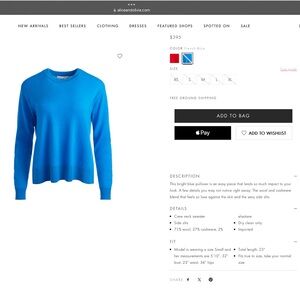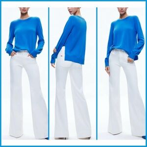This bright blue pullover is an easy piece that lends so much impact to your look. A few details you may not notice right away: The wool and cashmere blend that feels so luxe against the skin and the sexy side slits.