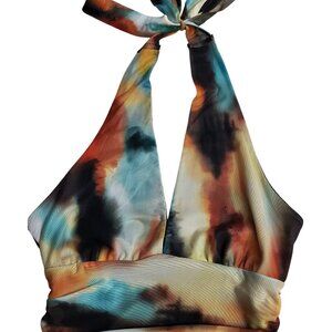SHEIN BAE NWT Mesh Tie Dye Multicolor Ruched Halter Bodysuit Size S (4)