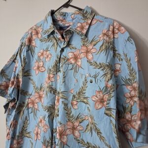 Croft & barrow XLT Tall Sky Blue Hawaiian Floral Cotton Short Sleeve Button Down