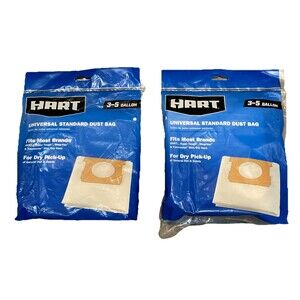 Lot of Two Hart Brand Universal Standard Dust Bag for 5 Gallon Vacuums 3 Pack White. Brand new and factory sealed. Please see all pictures. Between these two packs of bags, you will receive six dry dust bags.