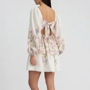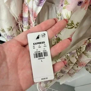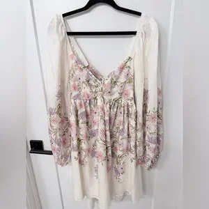NWT Express Cream and Pink Floral Long Sleeve Dress