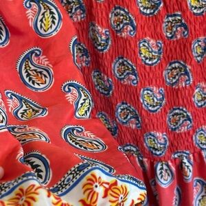Me 2 Magic Boho Maxi Dress Large Balloon Sleeves Orange Red Retro 70s
