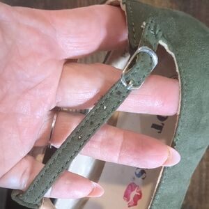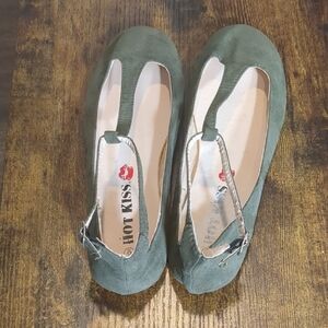 Stylish suede olive green Ballet, Mary Jane flats by Hot Kiss. Ideal for casual wear. Comfortable and trendy. What's not to love about these, feminine ladies! Size 6