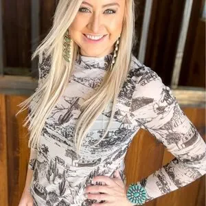 Embrace style with this scenic print women's top. The black and cream design offers a unique and fashionable look. Perfect for any occasion.