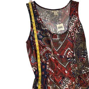 Lucky Brand XL Sleeveless Red Multi-Color Boho Print Dress With Tie Waist 100%