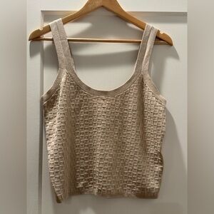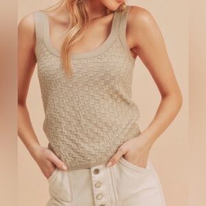 Chic beige tank top with a textured pattern. Ideal for casual outings. Comfortable and stylish.