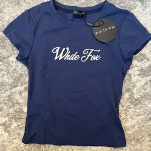 Stylish navy tee with White Fox logo. Soft fabric. Perfect for casual wear.