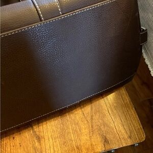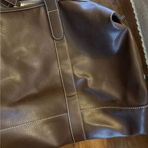 Stylish and durable brown vegan leather men's bag, perfect for everyday use. Measures 19”X14X9”. Great preowned condition. Hardly used.