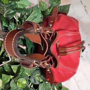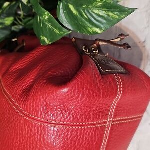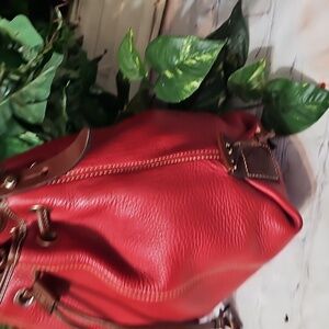 Dooney & Bourke Red Pebble Leather Drawstring Bag EUC