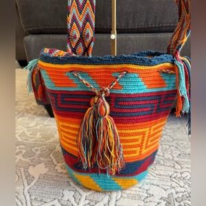 BEAUTIFUL woven handbag. There is no tag on it so I am not sure of the brand. It’s in great condition