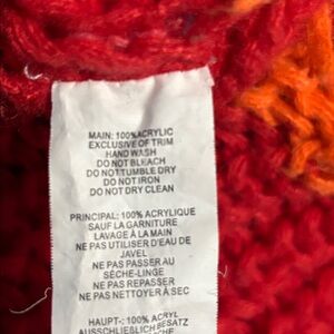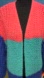 Vibrant knit cardigan with bold stripes. Features red, blue, green, and orange colors. Perfect for adding a pop of color to any outfit. Size small can fit a medium as well