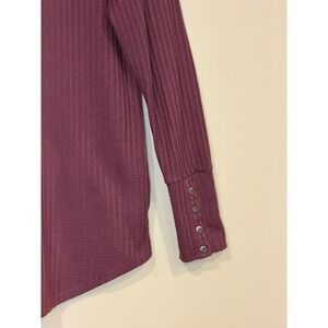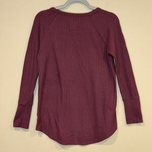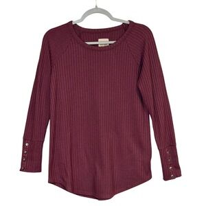 Chaser Womens Thermal Knit Top Burgundy Medium Waffle Button Cuff Raglan
