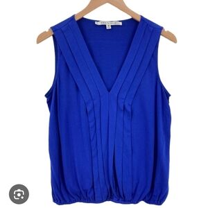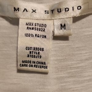 This Max Studio tank top features a relaxed fit with elegant pleated details that add texture and charm. Crafted in a soft, lightweight fabric, it offers a comfortable and stylish option for any occasion. The sleeveless design and clean lines make it a versatile addition to your wardrobe.