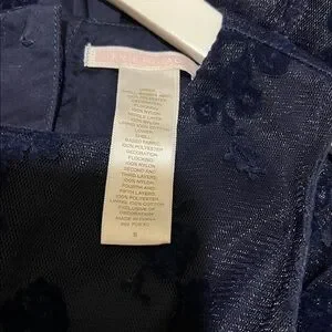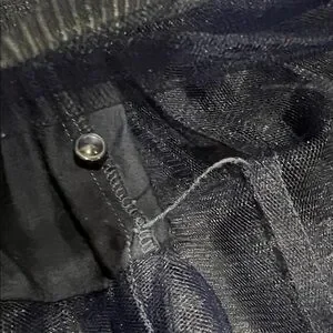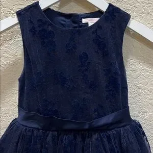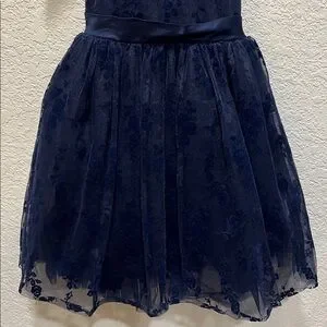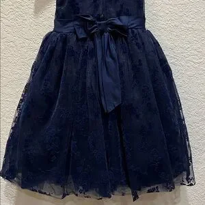 Beautiful dress! Luxurious tulle with sateen sash with bow. Fine cotton batiste lining and tulle enhanced petticoat. Extra button still attached. There is so much tulle but I do not see a single tear. Some of the tulle on hem needs to be steamed to be straightened out. Sash on waist also needs to be steamed.