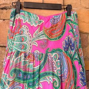 Lauren Ralph Lauren M Pink Paisley Tiered Cotton Flowy Women Maxi Skirt BOHO