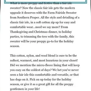 Southern Proper Farm Fairisle Full Zip Lined Sweater Jacket Size XL Preppy Mens