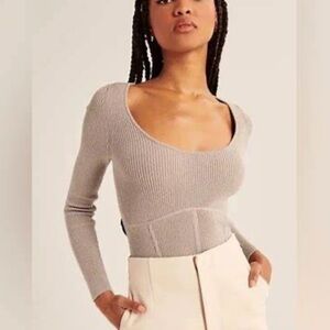 Upgrade your wardrobe with this new with tags Abercrombie & Fitch ribbed crop top / sweater in a versatile beige neutral tone. With a flattering scoop neck, long sleeves, and fitted ribbed knit, this piece pairs effortlessly with high-waisted jeans, skirts, or leggings. Ideal for layering through fall and winter or styling for minimalist, Y2K, and casual chic outfits.