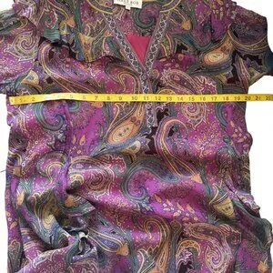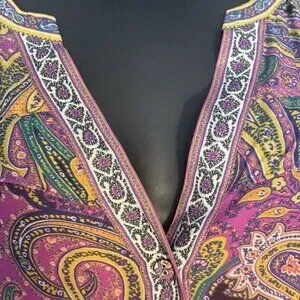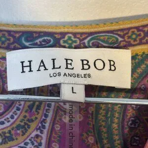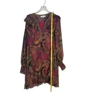 Hale Bob Paisley Print Long Sleeve Belted Dress L