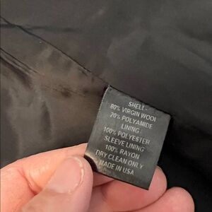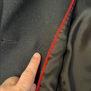 **one missing button on front and one button needing reinforcement. One button missing inside jacket (very easy fixes). Jacket has barely been worn