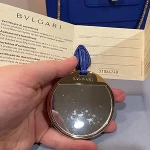 Excellent condition. Only wear are some light wear to the exterior leather like light water marks and one long scratch on the front. Inside is excellent with no wear to note. Accessories included are the bvlgari mirror, authentication card, and original plastic dust bag/rain bag. 100% authentic.