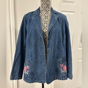 Northern Reflections Cottagecore embroidered Floral Denim Blazer Jacket - Size L
