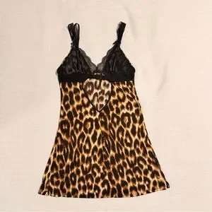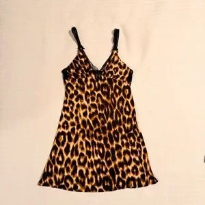 Bold, flirty, and unmistakably Betsey! This hot leopard print slip dress features black lace trim along the neckline and delicate lace straps for that signature feminine edge.